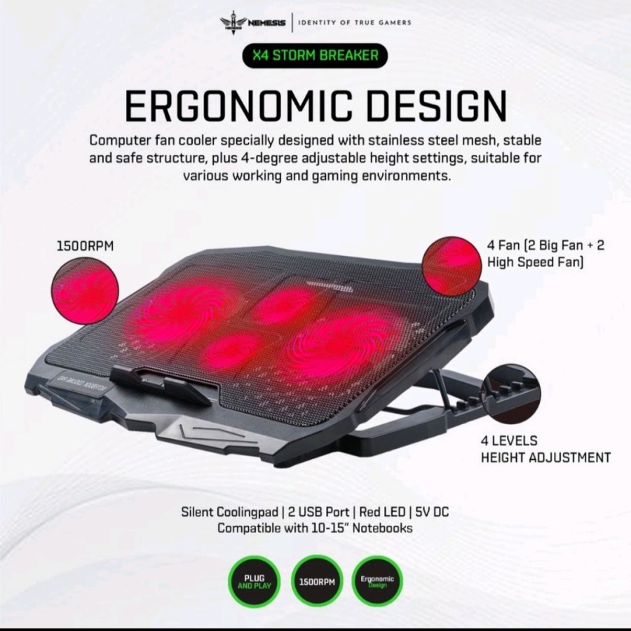 NYK Nemesis X4 / X 4 STORM BREAKER Gaming Cooling Pad / Cooling Fan