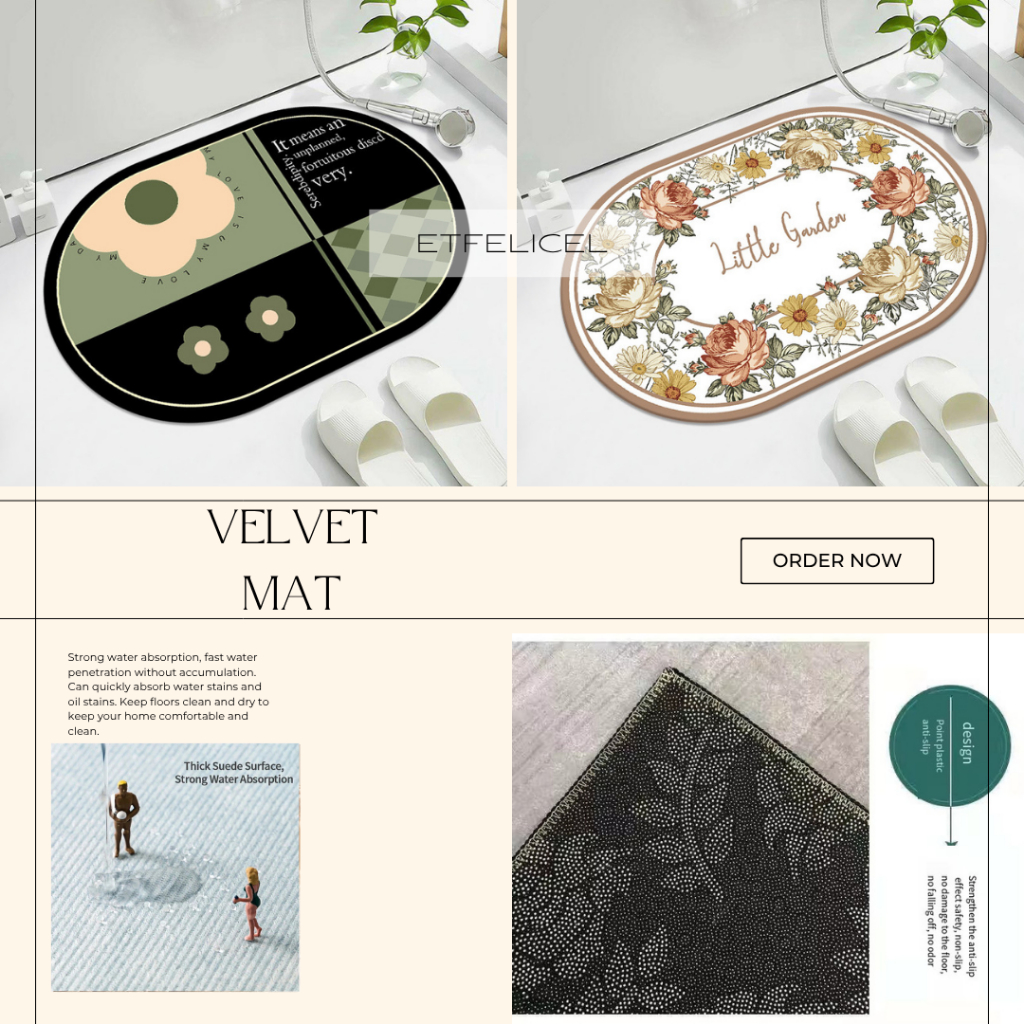 FLASH SALE Velvet Mat Keset Lantai Kaki Bludru Halus Anti Selip Pintu Kamar Mandi