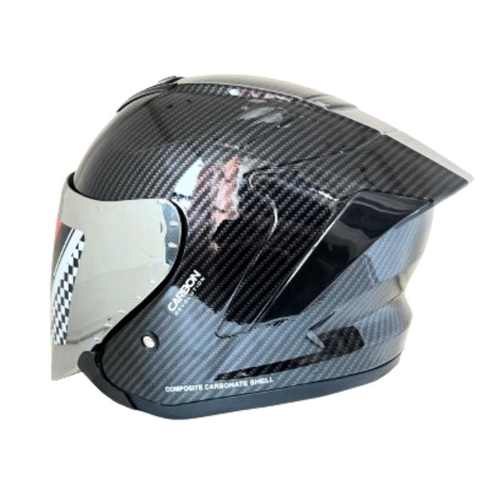 Murah Helm JS ARMOR Half face Motif CARBON ORIGINAL SNI Motorcycle Kaca Visor - Carbon M Smoke Elegan