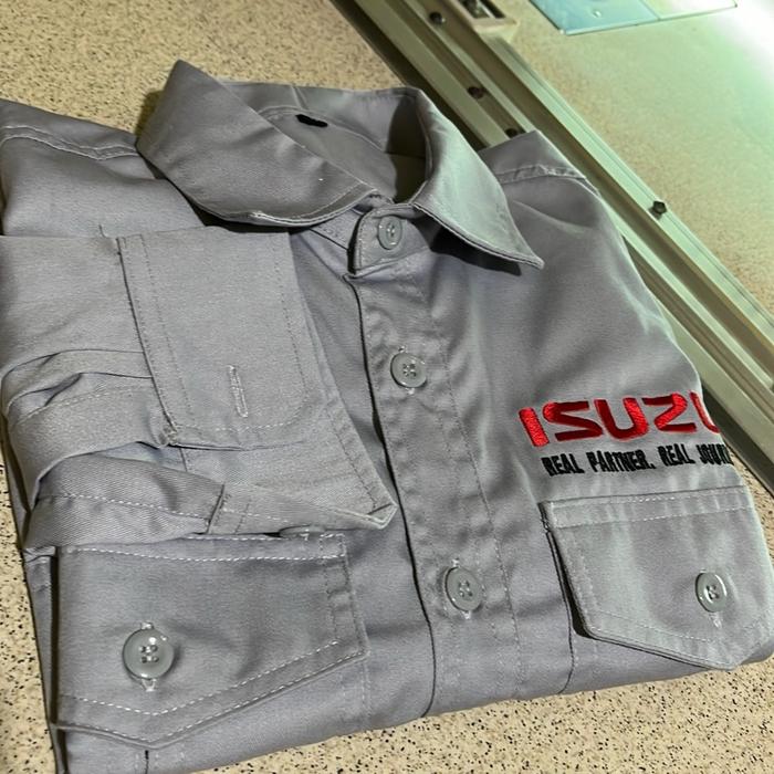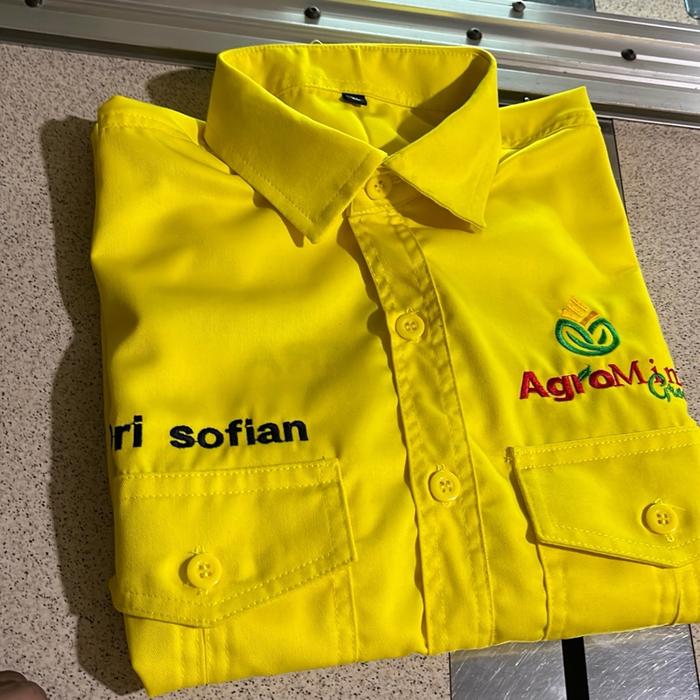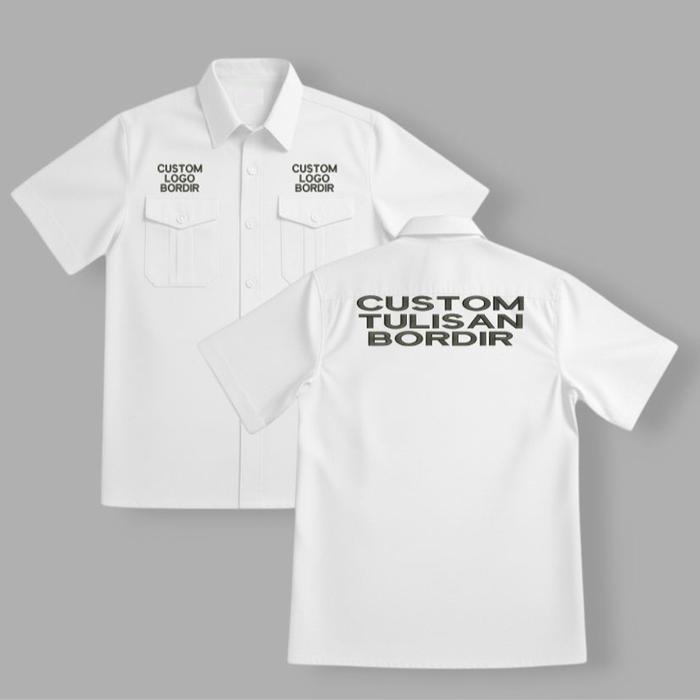 BORDIR KOMPUTER KEMEJA KERJA WORKSHIRT CUSTOM LOGO DAN BELAKANG TULISAN - HITAM, M