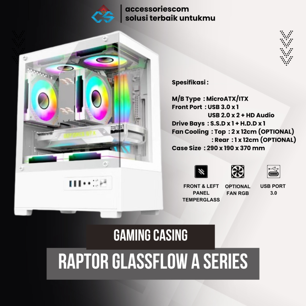 Casing Gaming Raptor Glass Flow A Series White M-ATX / ITX - Casing Gaming