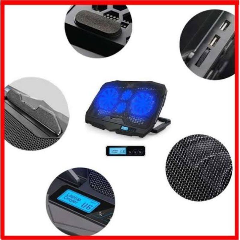 S18 Coolingpad Cooler Laptop 4Fan Blue LED Display Control Speed Fan Strong Wind Speed Gaming -01490