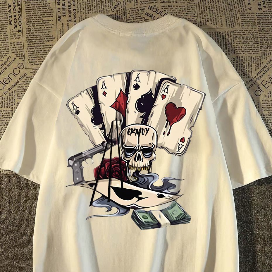 Baju Kaos Katun Oversize Motif Kartu Remi Tengkorak Keren, Nyaman Bernapas, Unisex