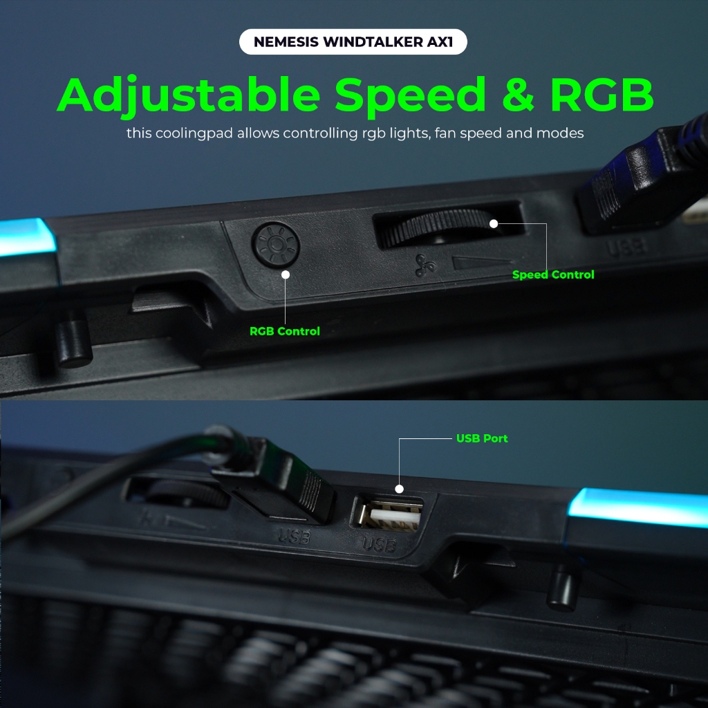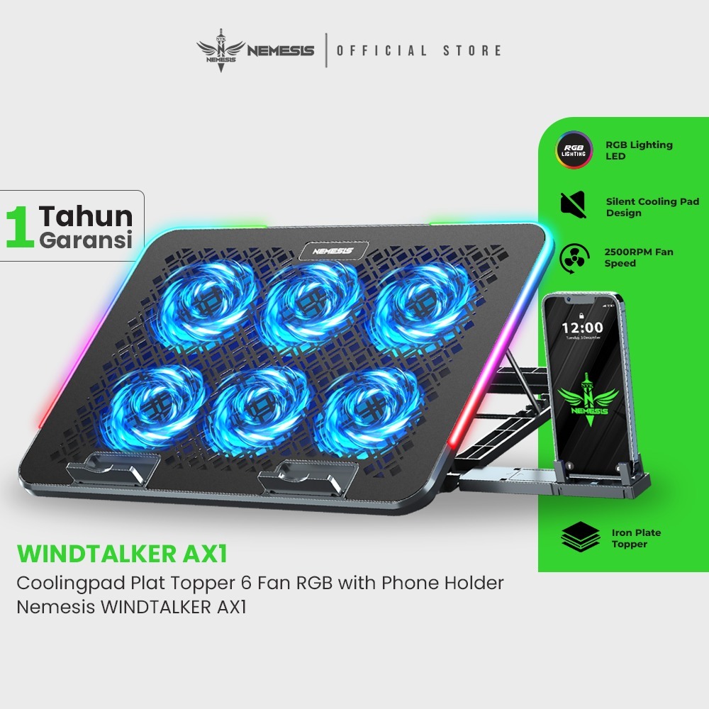 Cooling Pad Plat Topper 6 Fan RGB with Phone Holder Nemesis WINDTALKER AX1