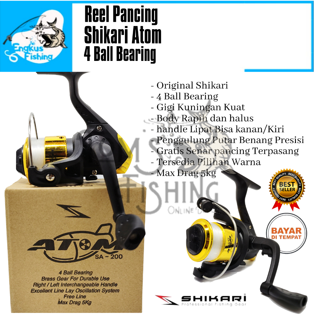 Reel Pancing Shikari ATOM 200 mini (4 Bearing) Gratis Senar Murah - Engkus Fishing