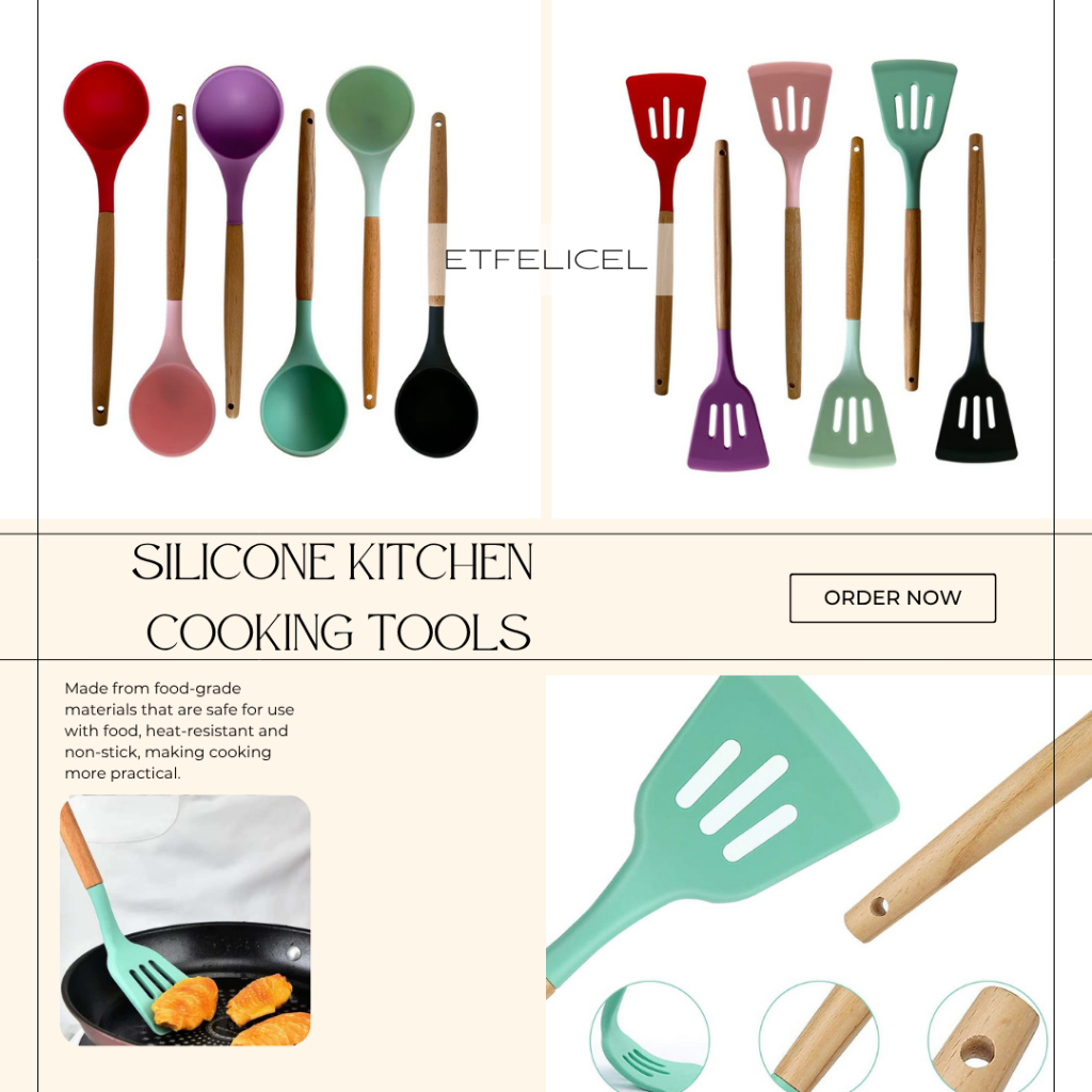 FLASH SALE Silicone Kitchen Cooking Tools Peralatan Masak Goreng Tumis Rebus Panggang Sutil Spatula Silikon