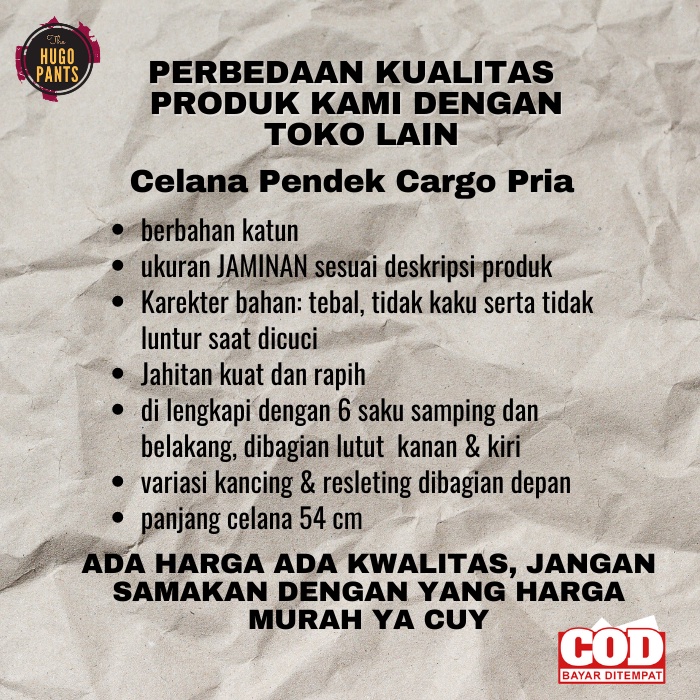 CARGO PANTS CELANA CARGO PENDEK GUNUNG PRIA ARMY