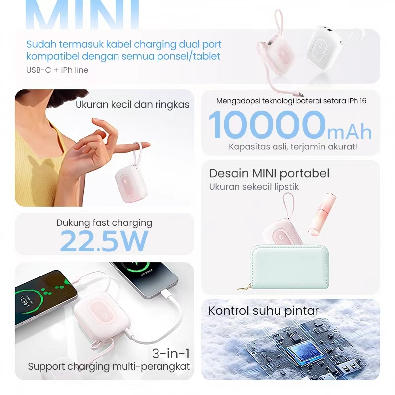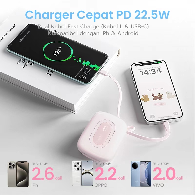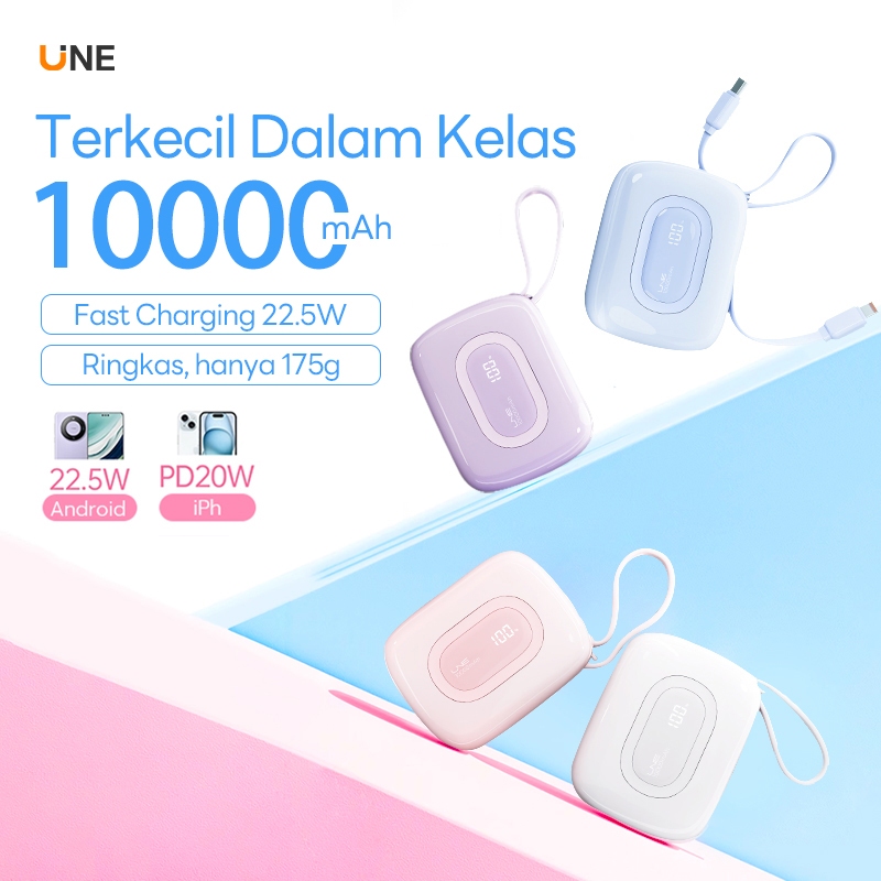 [ Saya yang terkecil 10000mAh ] UNE POWERBANK Fast Charging Mini 10000mAh 22.5W Type C & L line