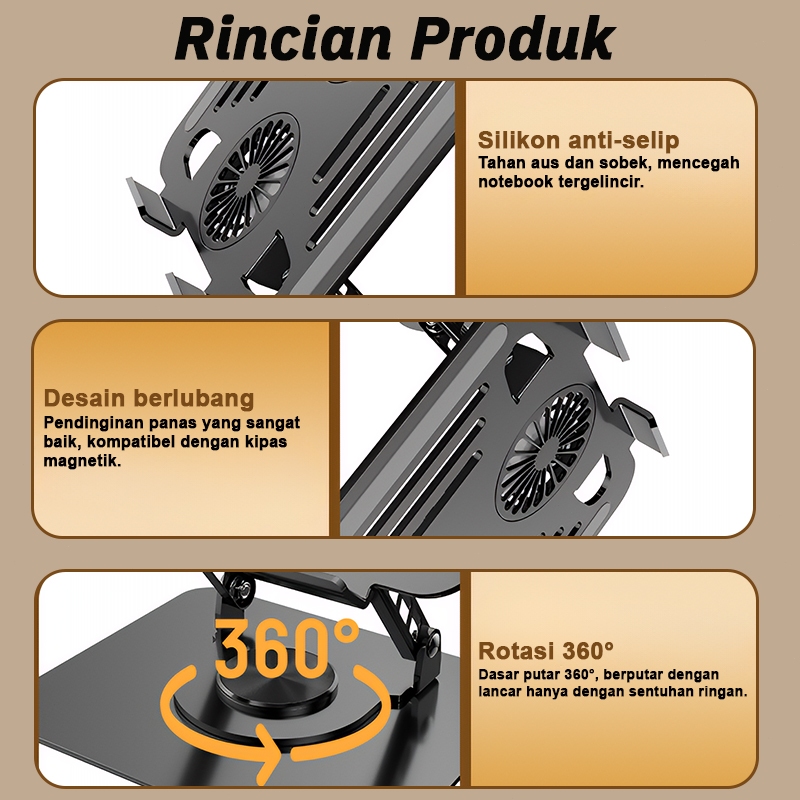 Stand Laptop Cooling Pad Turbo Fan 360° Logam Dual Axis Kokoh Stabil WFH Terbaik