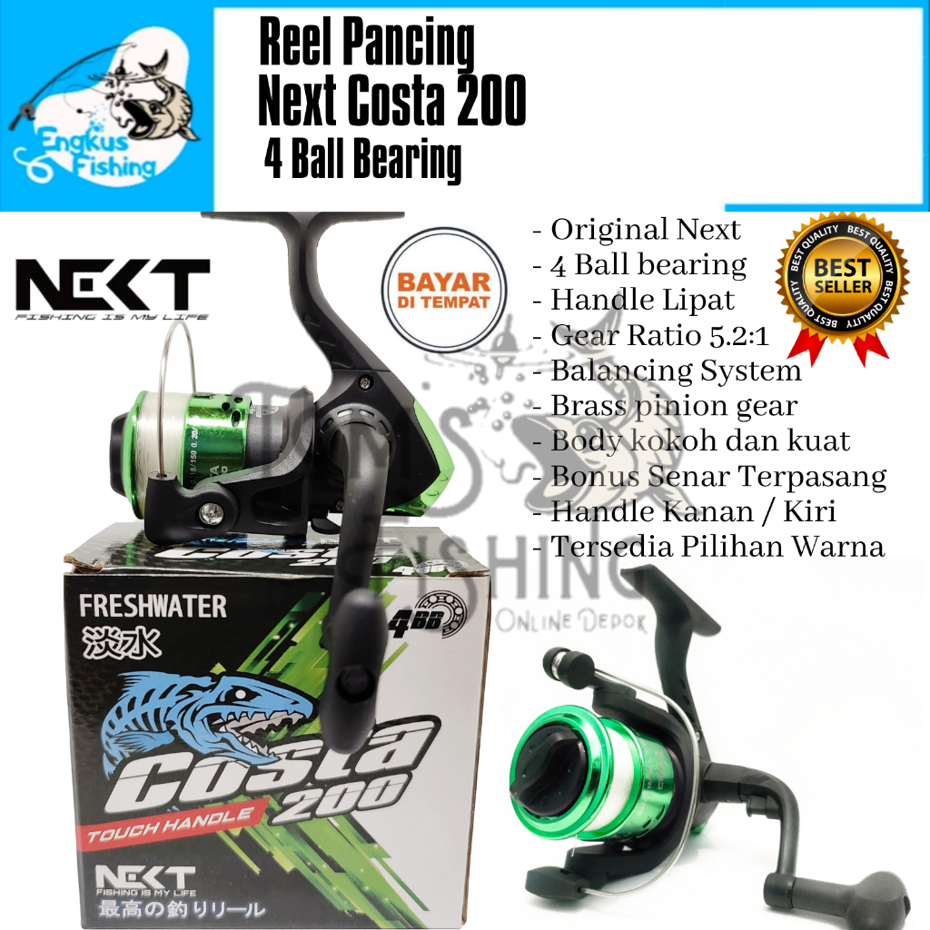 Reel Pancing Next Costa 200 Mini (4 Bearing) Bonus Senar Murah - Engkus Fishing