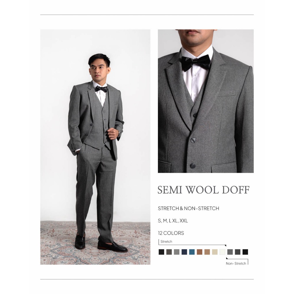 Full Set Jas Pria Semiwool Stretch Doff (Jas + Celana + Rompi + Dasi + Cover) - YUNG