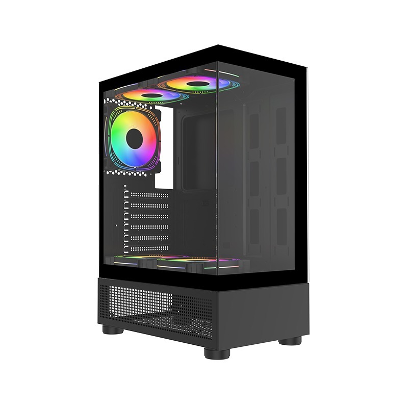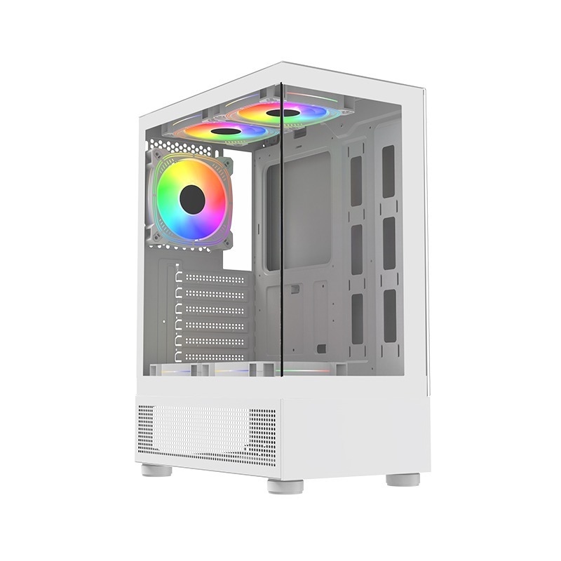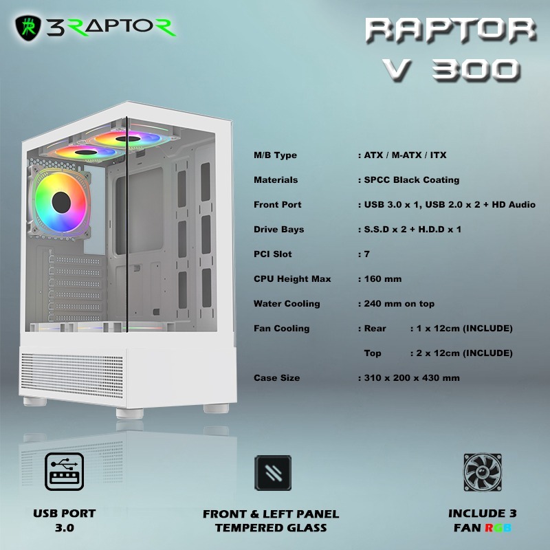 Casing PC Gaming Raptor V300 ATX M-ATX ITX Tempered Glass + 3 Fan RGB - Hitam / Putih
