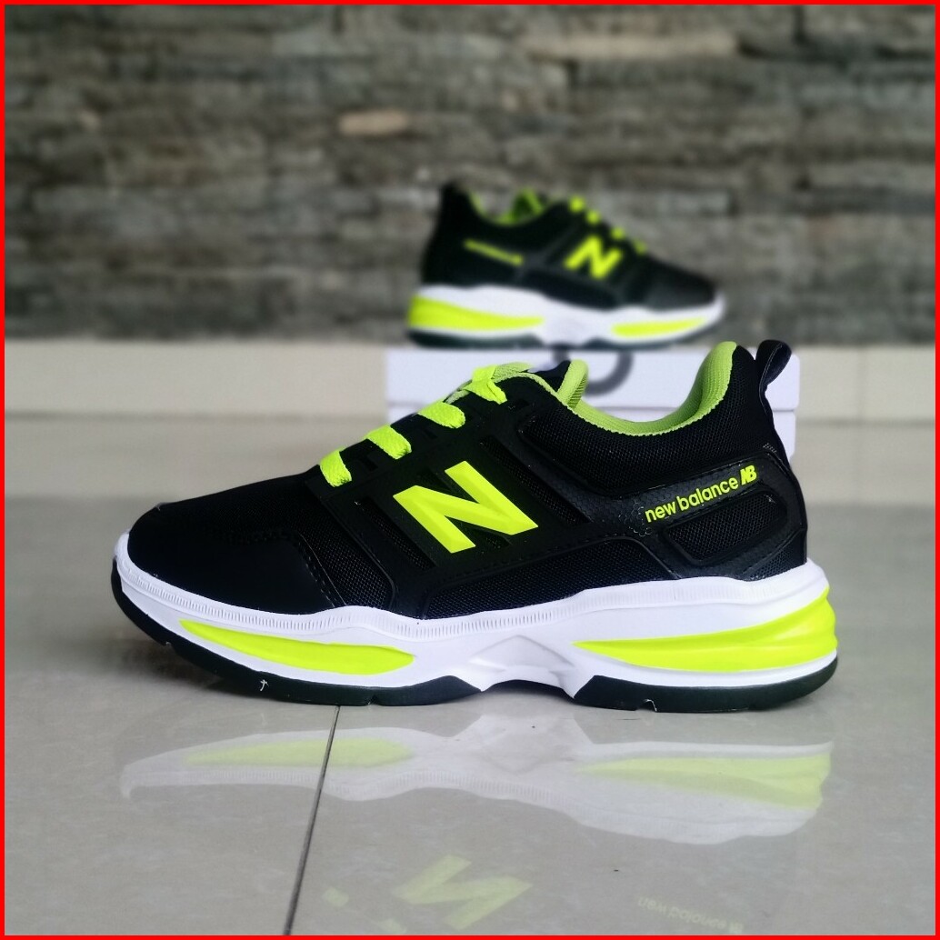 Sepatu Sneakers Running Gym Shoes Hitam Lis Stabilo Sepatu Olahraga Lari Pria