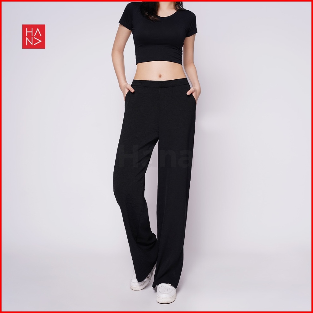 Hanafashion Jkt - Petra Wrinkle Slit Loose Pants Celana Panjang Wanita Casual - Lp050