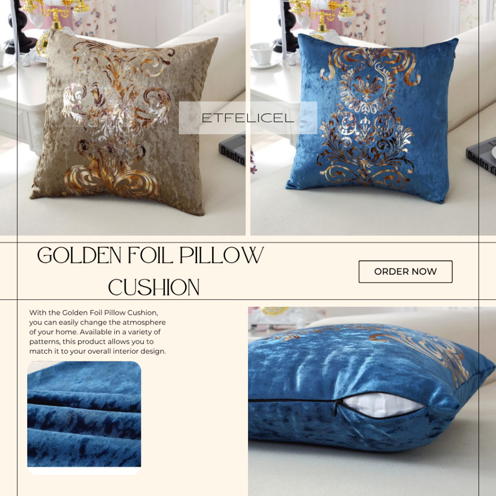 FLASH SALE Golden Foil Pillow Cushion Sarung Bantal Sofa Bludru Mewah Elegant Murah
