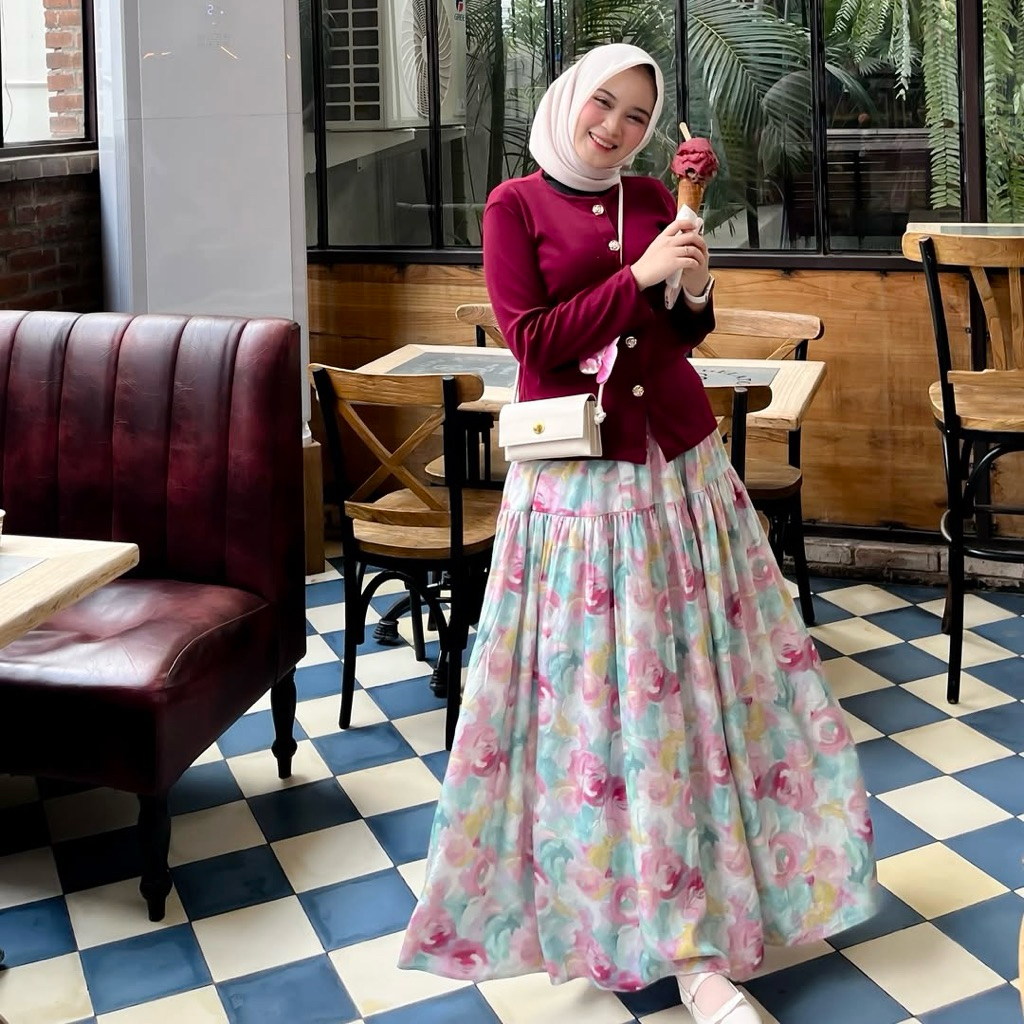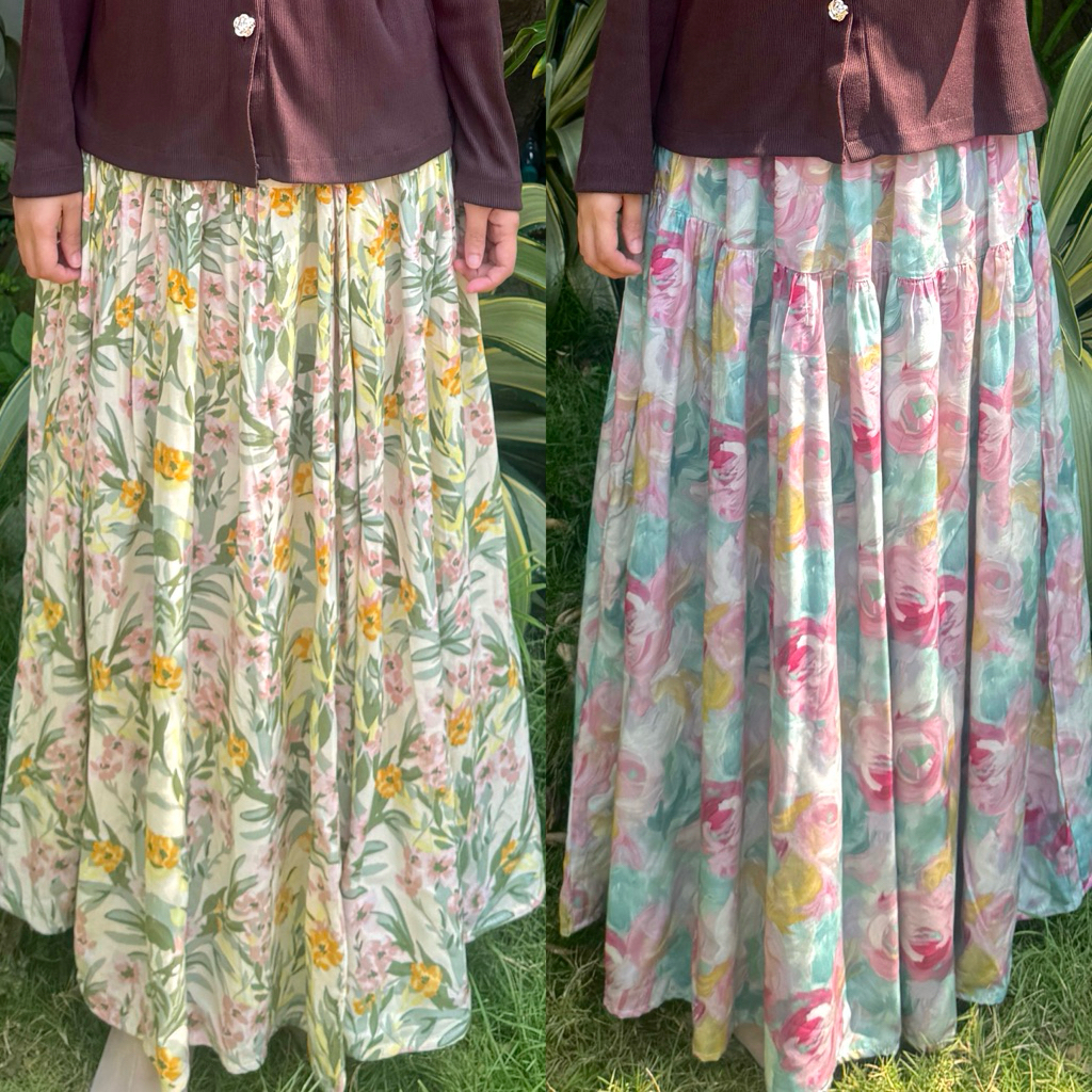 Floral Pattern Skirt | Rok Motif Bunga | Korean Skirt | Flower Skirt | Rok Panjang | Rok Maxi Wanita