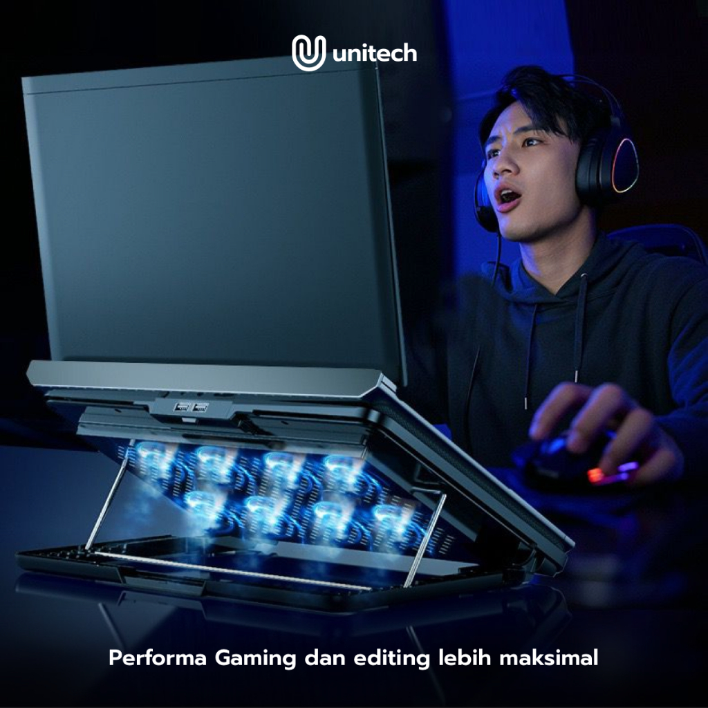 Gaming Cooling Pad Laptop AeroFlow Hi-Speed Cooler Fan 8x Turbo Unitech
