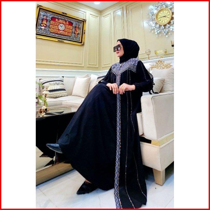 Gamis Abaya Hitam Turkey Bahan Jersey Mix Ceruty Bordir Baju Busana Maxi Dress Muslim Wanita - Ayuni