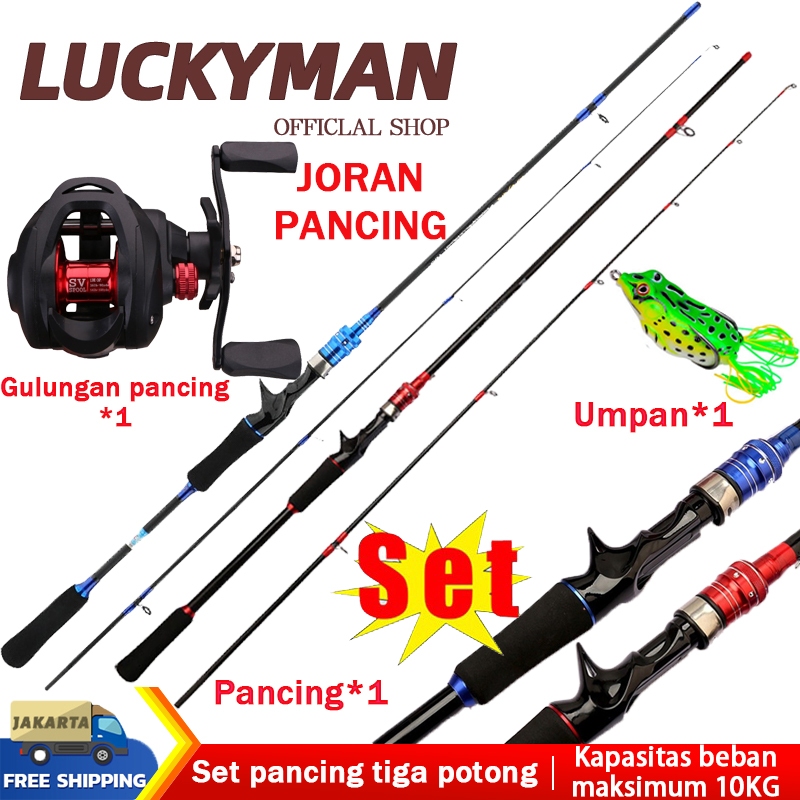 【Promosi】1 set pancing lengkap/Set Joran Pancing Tiga Potong Kuat/Set Gulungan Pancing Logam BC