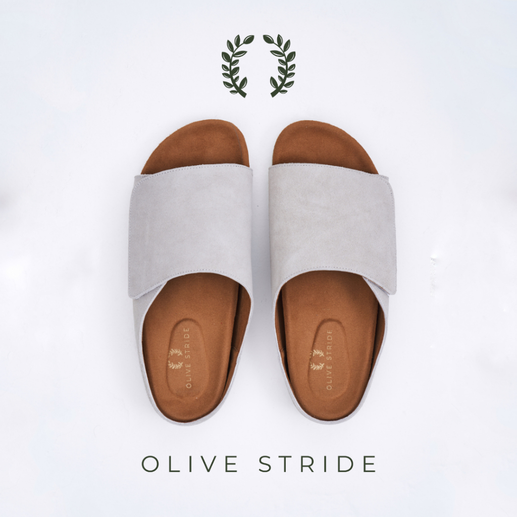 Olive Stride - Issa Slippers in Light Grey Sandal Kasual Pria Abu Muda