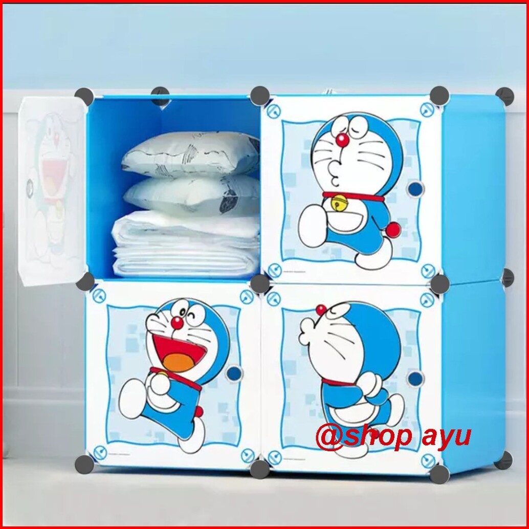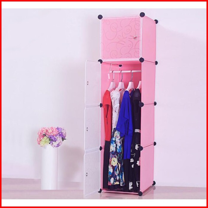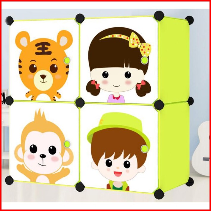 Lemari Plastik Portable Lemari Pakaian Rak Serbaguna Susun Lemari Baju Anak 4 Pintu