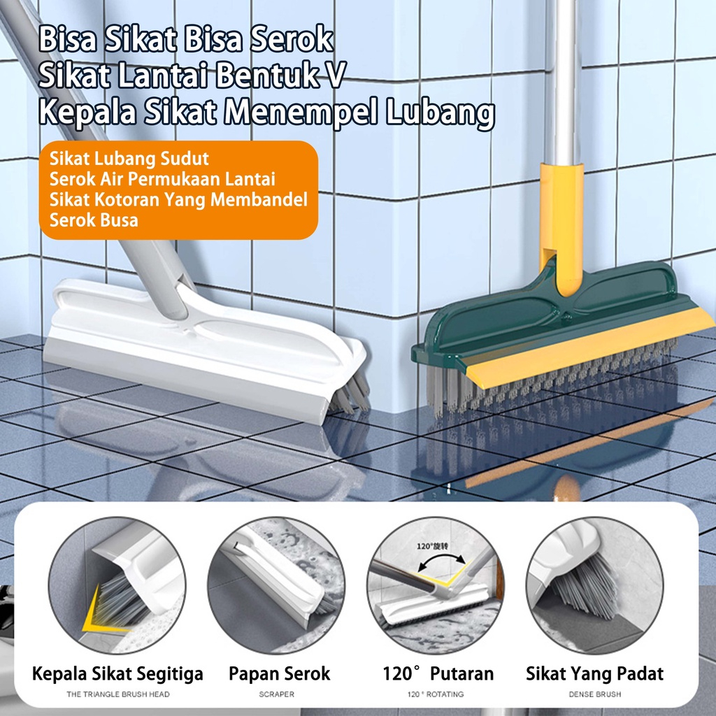 FLASH SALE 2 in1 Sikat Lantai Wiper Pembersih Lantai Dinding Kamar Mandi Gagang Panjang Portable Sapu Lancip
