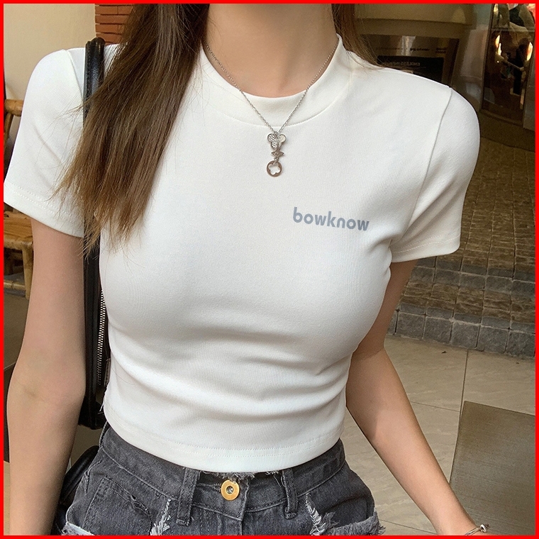 Misco T-shirt Crop Top Lengan Pendek Kaos Wanita Crop Top Korea Kupu-kupu Kaos Crop Wanita Kekinian Baju Atasan Wanita T