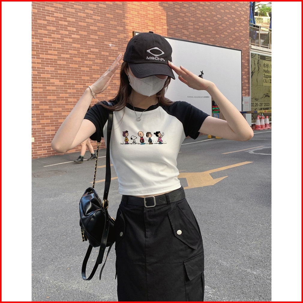 Misco T-shirt Lengan Pendek Kaos Crop Wanita Kaos Snoopy Wanita Kaos Wanita Crop Top Ootd 100 Cotton