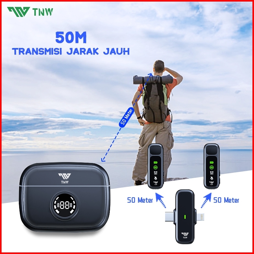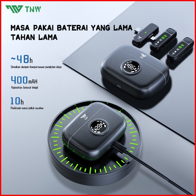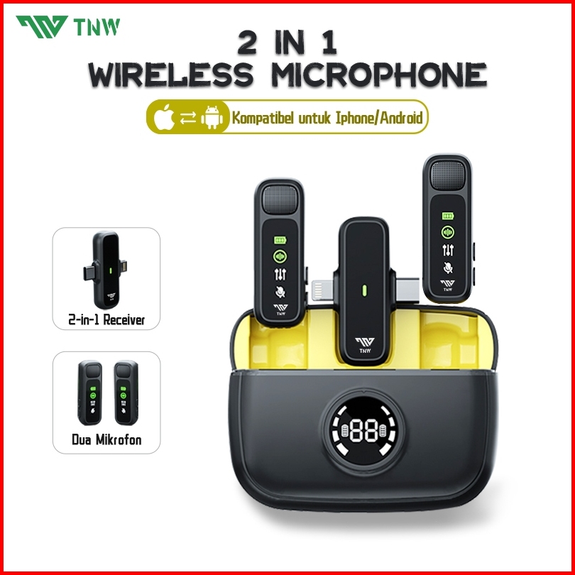Tnw A13 Wireless Microphone 2-in-1 Clip On Mic Wireless Dual Lavalier Mikrofon Iphone Dan Charging Case Bluetooth Mikrof