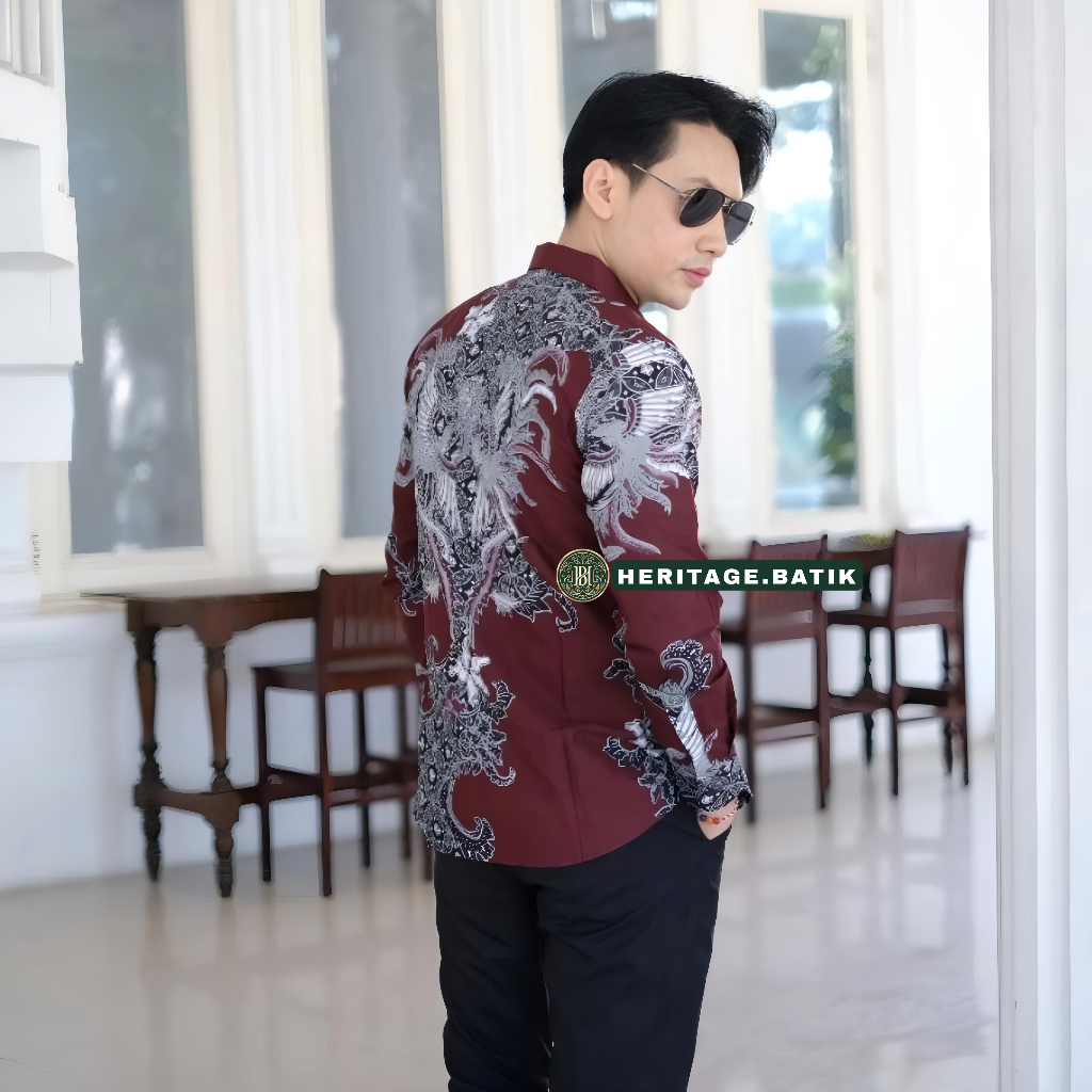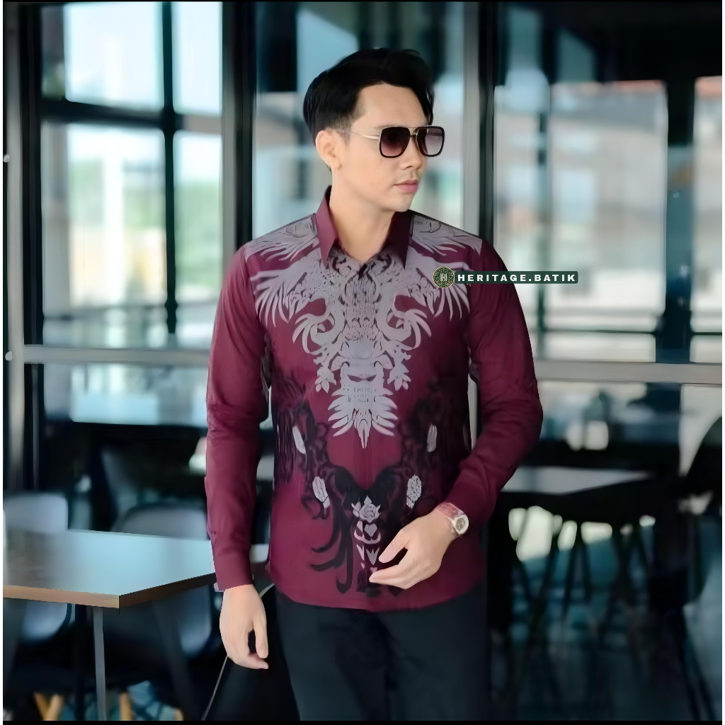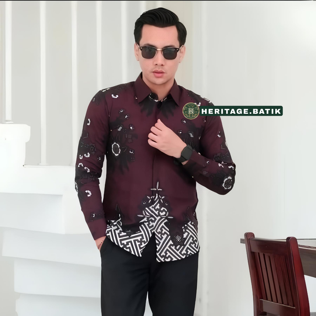 Kemeja Batik Pria MERAH BURGUNDY SLIM FITT Lengan Panjang Best Seller motif kece keren TERBARU & TERLARIS,TERMURAH