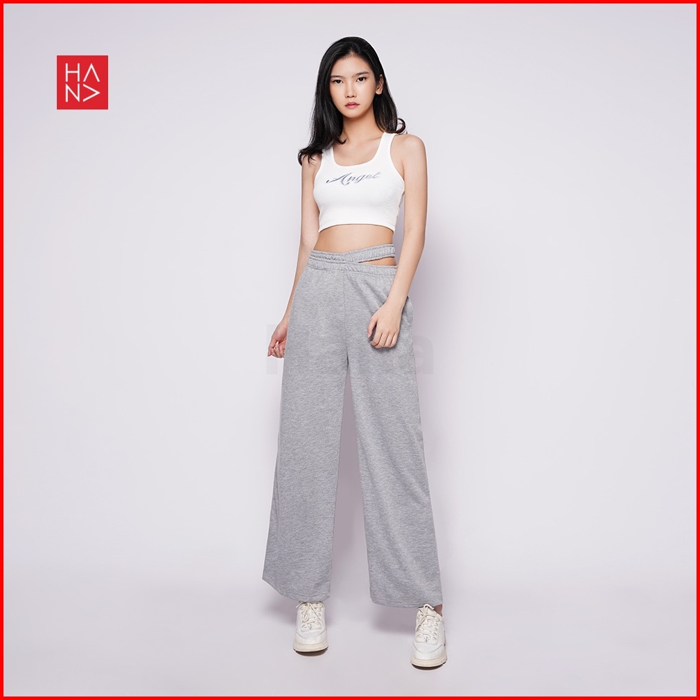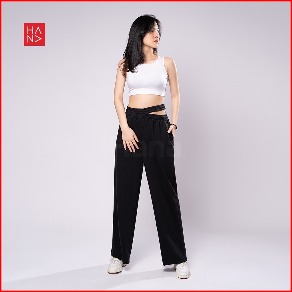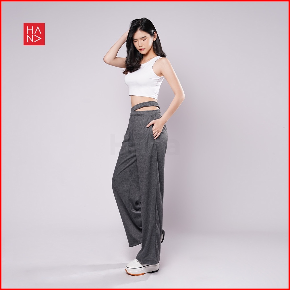 Hanafashion Jkt - Sandra Slit Loose Pants Celana Panjang Bahan Terry Wanita Slim - Lp035