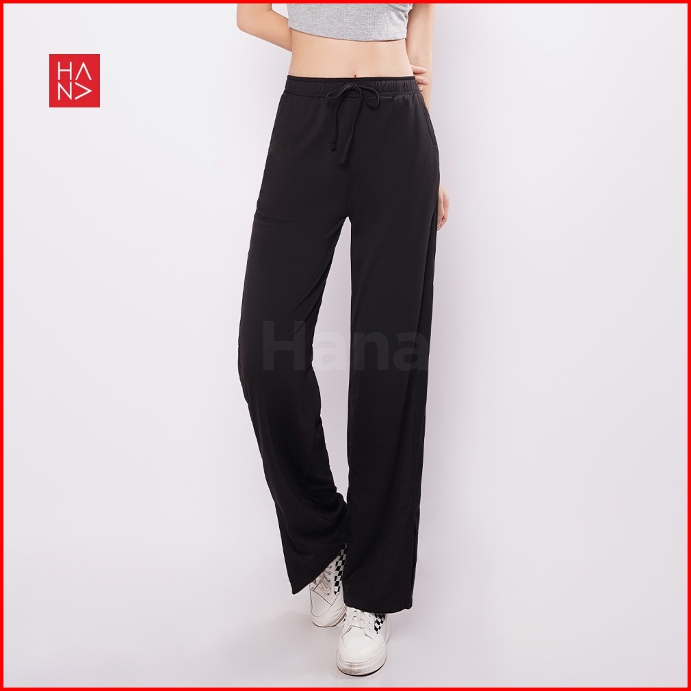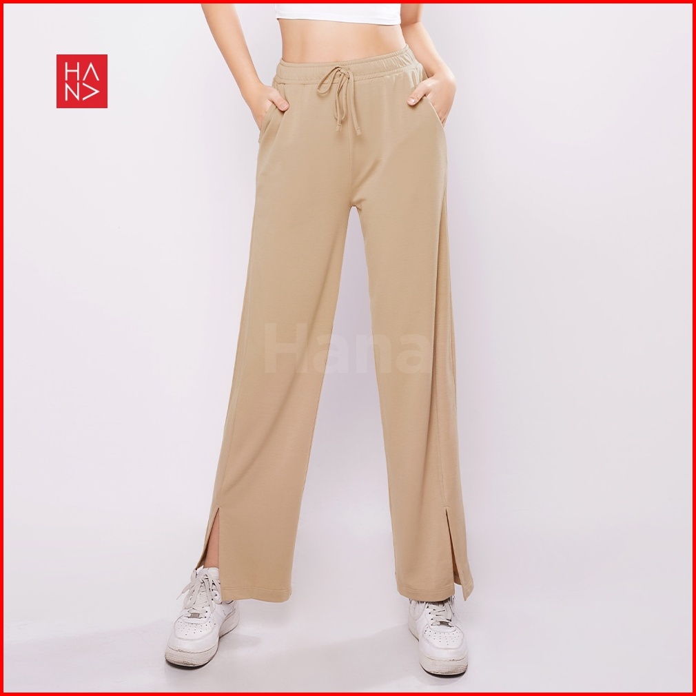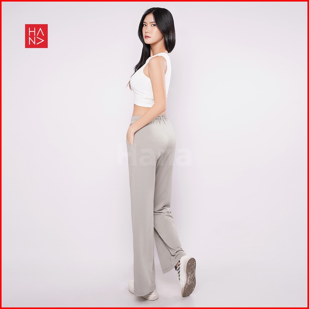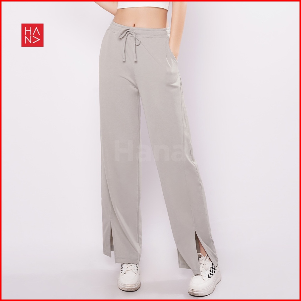 Hanafashion Jkt - Davina Ribbon Slit Loose Pants Celana Panjang Bahan Kaos Wanita - Lp138