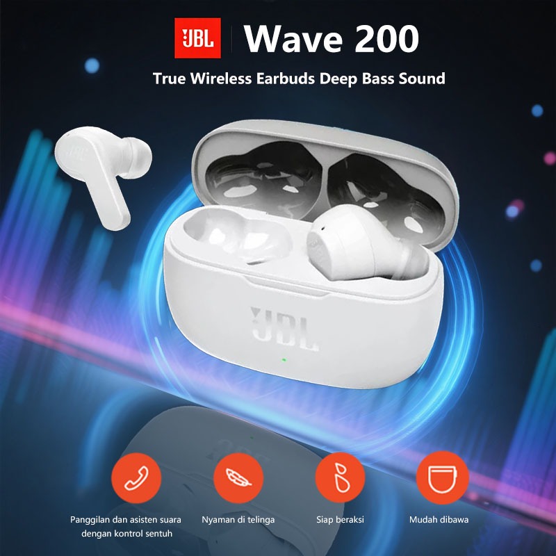 Headset JBL Wave 200TWS True Wireless Earbuds Deep Bass Sound Bluetooth 5.2, Water & Dust Resistant, With Microphone For