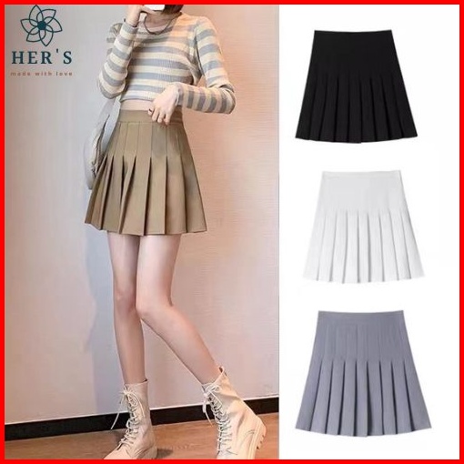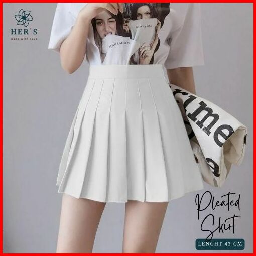 Her S - Lula Skirt - Warna Lengkap - Rok Mini Wanita Mini Skirt Pleated Plain Rok Pendek Polos Rok Model Lipat Rok Pende