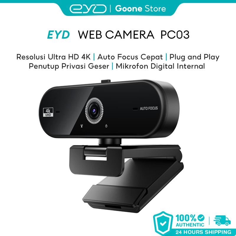 EYD PC03 Webcam Laptop 4K UHD Auto Focus Dengan Mic & Privacy Cover Kamera PC Untuk Zoom Meeting