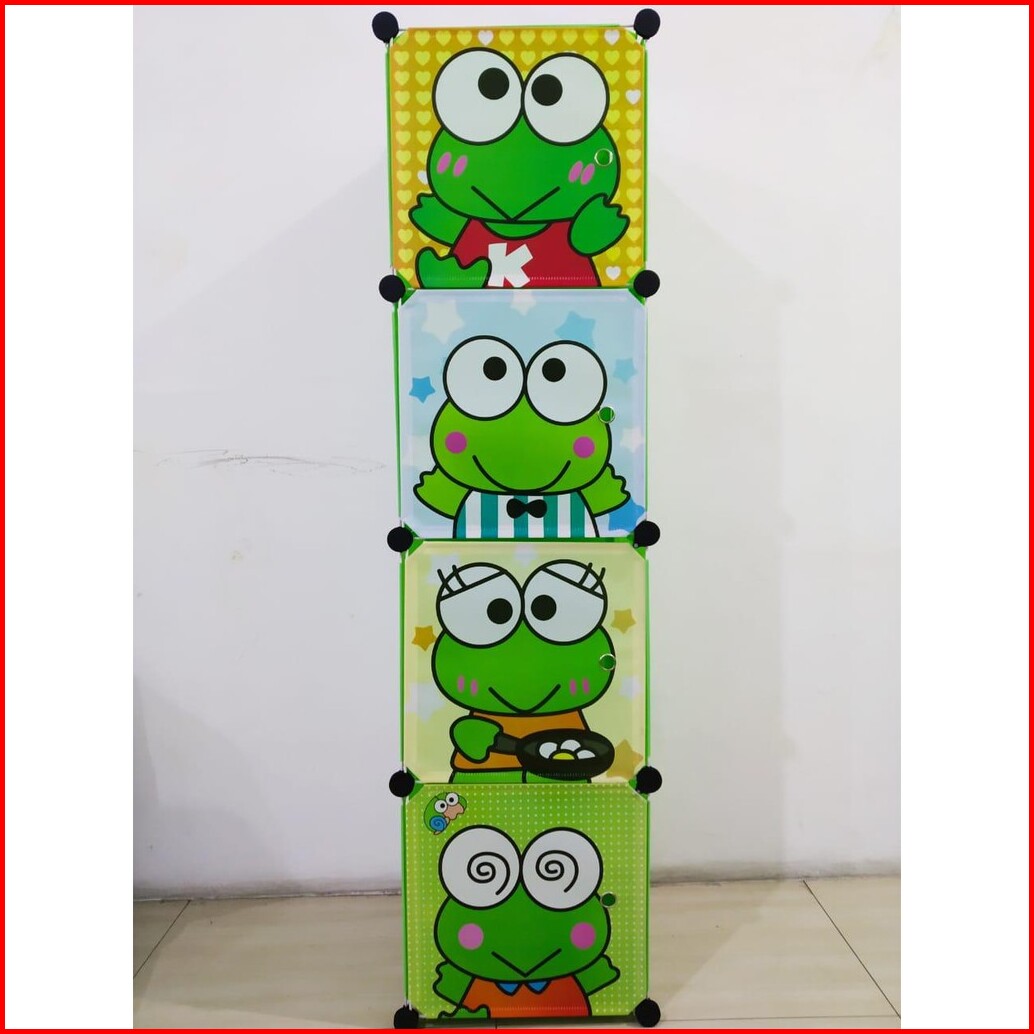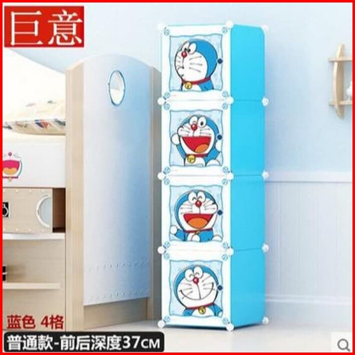 Lemari Pakaian Plastik Rak Serbaguna Susun Plastik Lemari Baju Rak Buku 4 Pintu Kotak
