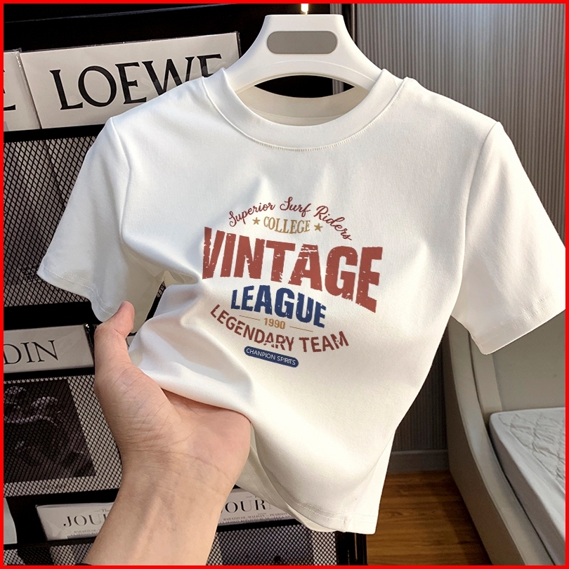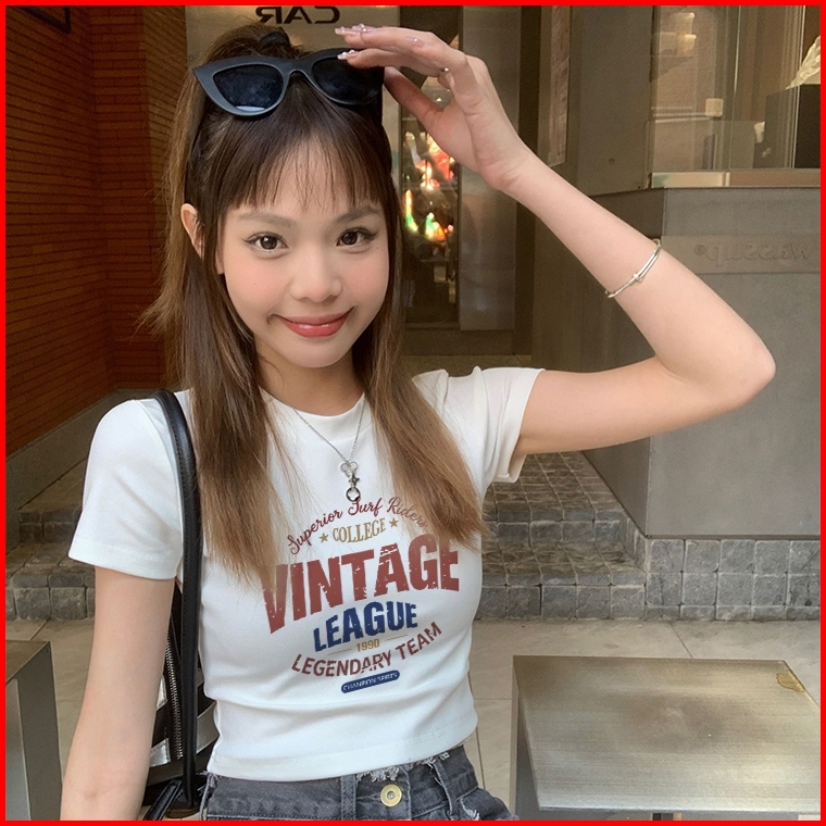 Misco T-shirt Crop Top Tebal Y2k Lengan Pendek Baju Kaos Crop Wanita Vintage League 1990 Baju Atasan Wanita Terbaru Crop