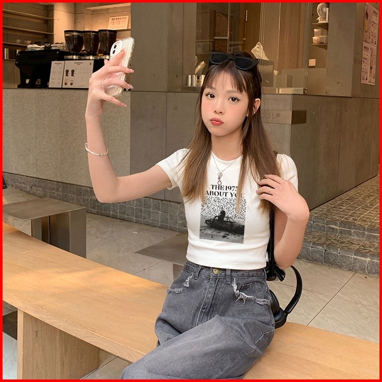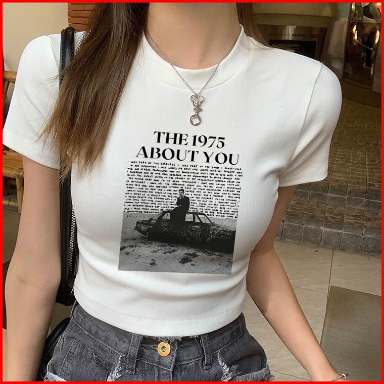 Misco T-shirt Crop Top Lengan Pendek Kaos Wanita Crop Top The 1975 About You Kaus Crop Wanita Baju Atasan Wanita Terbaru