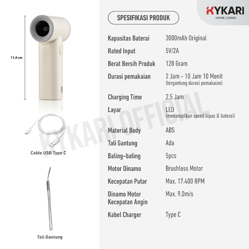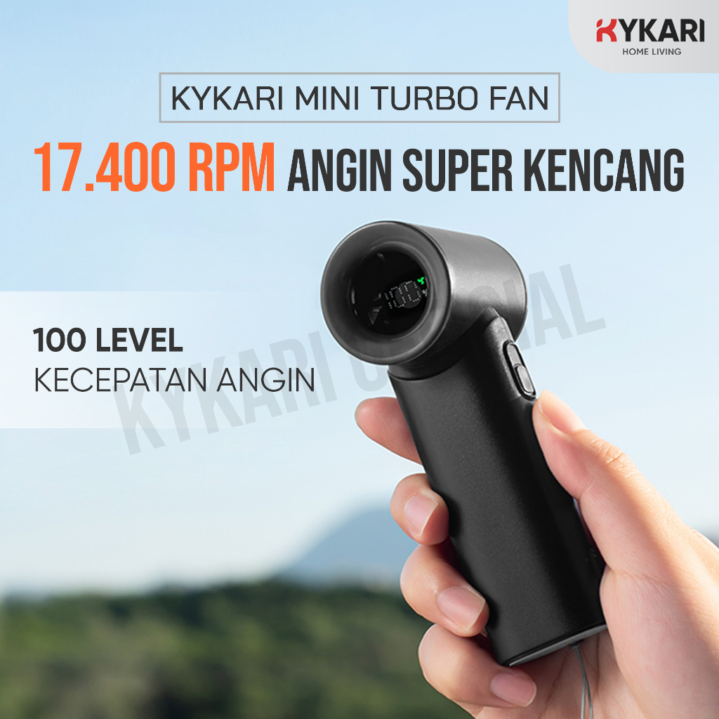 Kykari Mini Turbo Fan 17400 Rpm 100 Level Speed Super Kencang Layar Led - Kipas Angin Kecil Strong High Speed Portable R