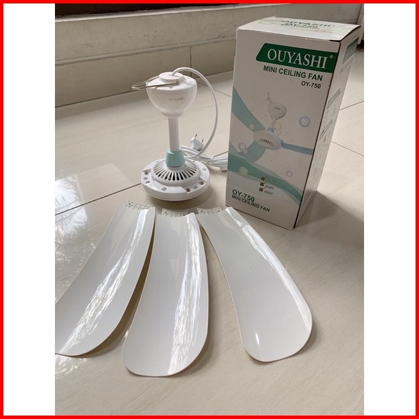 Kipas Angin Gantung Ouyashi Oy-750 Warna Putih Biru Muda Real Pic