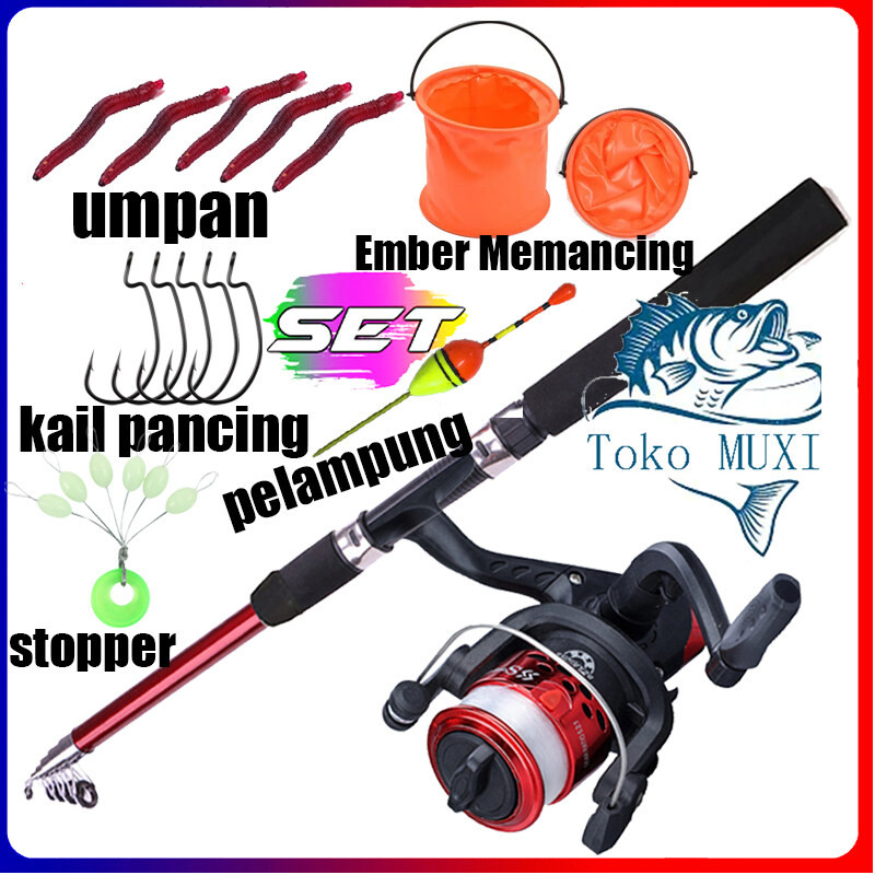 pancingan 1 set lengkap murah Set Joran Pancing Dan Reel Murah Bonus Senar 1 Set Audrey 5BB + Joran Antena 80cm 110cm150Cm joran pancing full set pancing satu set pancing satu set lengkap
