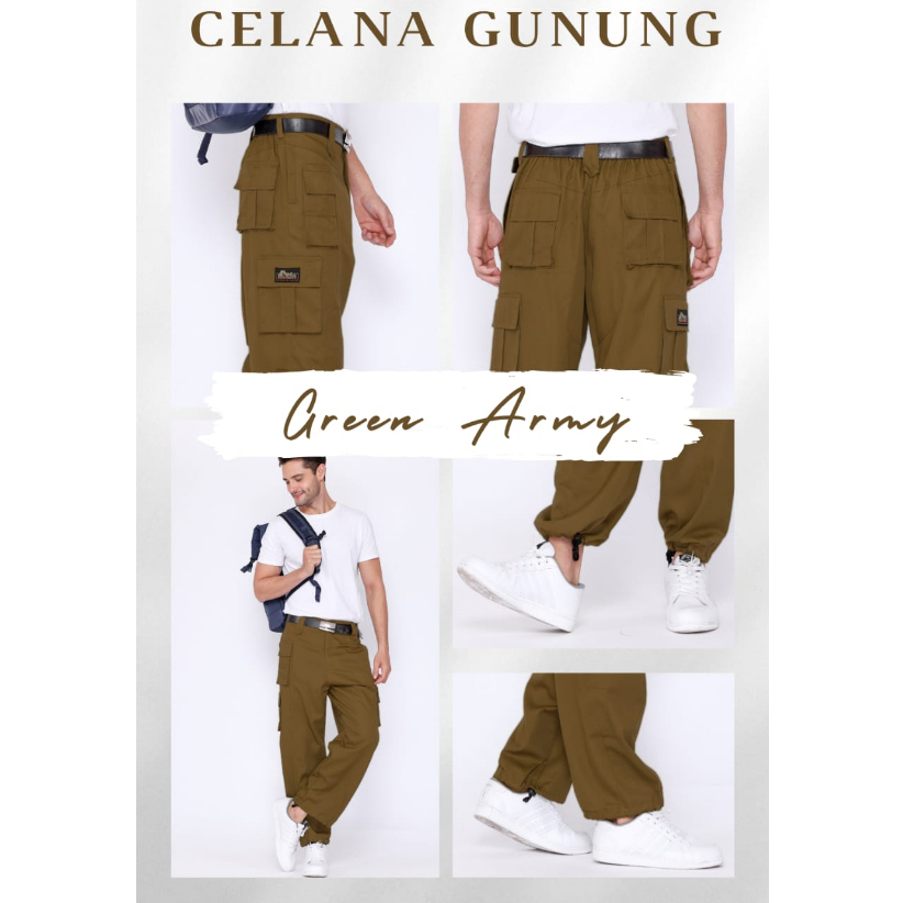 Celana Gunung Panjang Cargo Hiking Outdoor Pria Wanita Bahan Drill Premium Adem Tebal Kuat & Awet