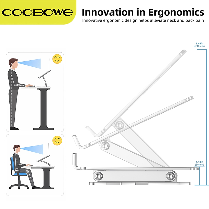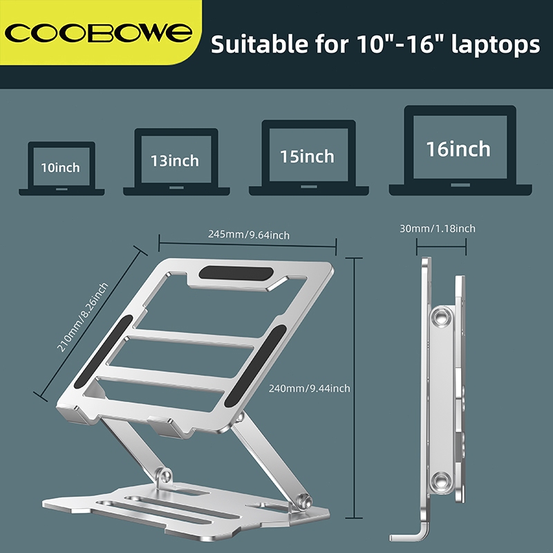 Coobowe Holder Laptop Stand 360 Degrees Rotatable Dudukan Laptop Bisa Dilipat Portable Stand Laptop Aluminium Cooling Pe
