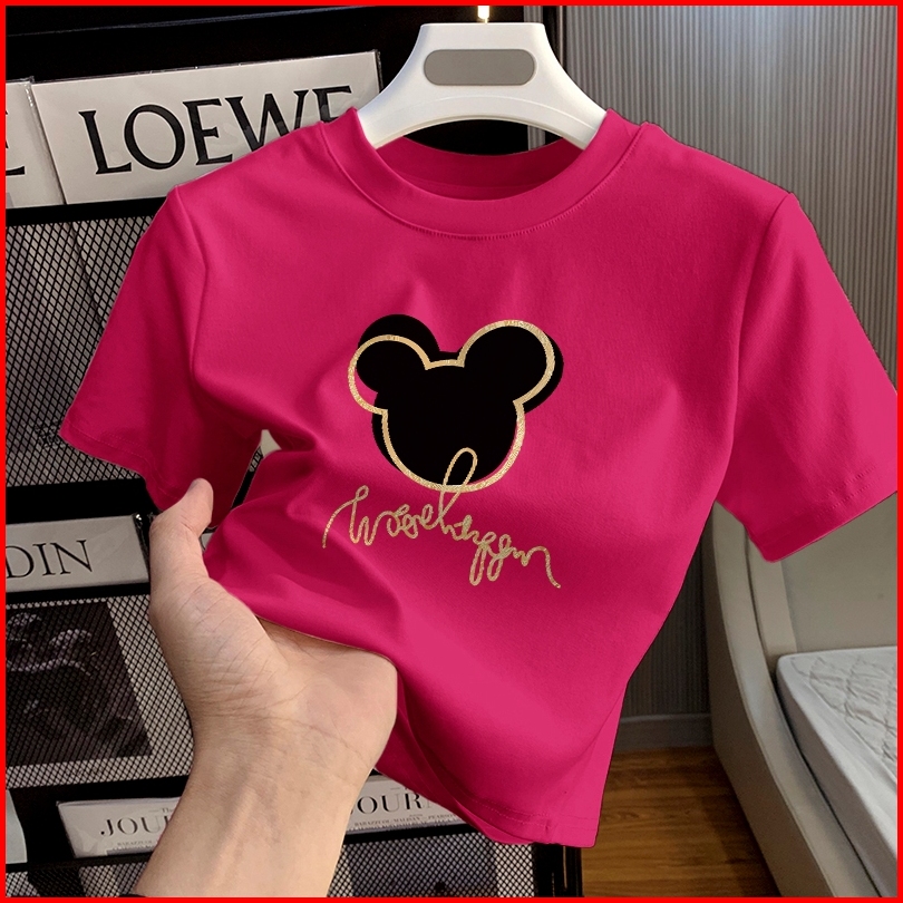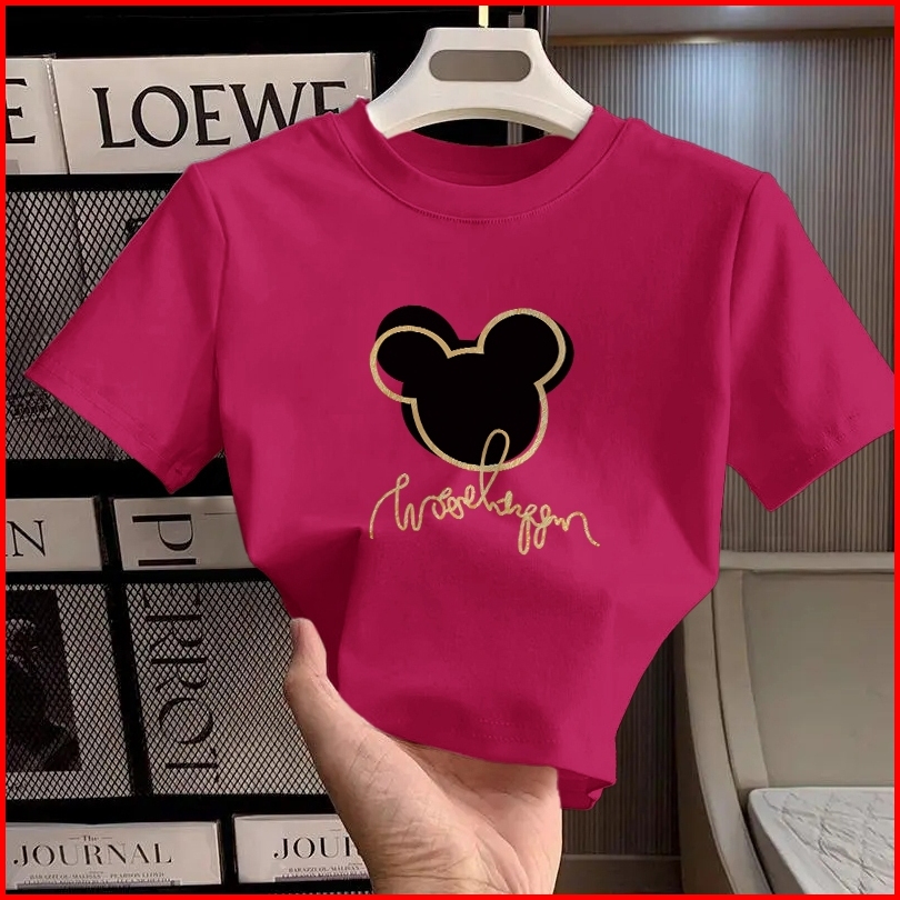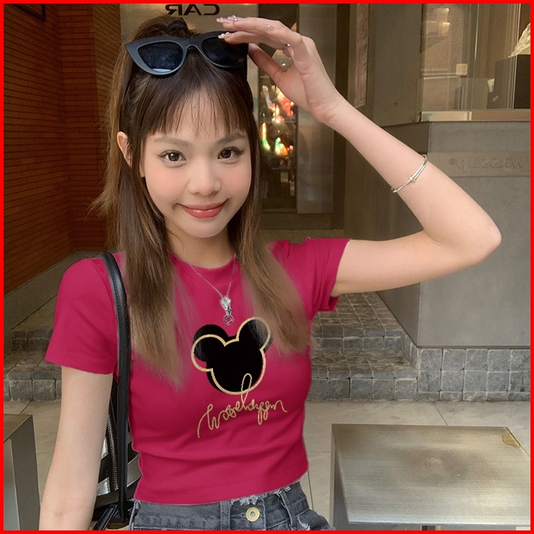 Misco T-shirt Crop Top Lengan Pendek Kaos Wanita Crop Top Korea Black Mickey Kaos Crop Wanita Kekinian Baju Atasan Wanit