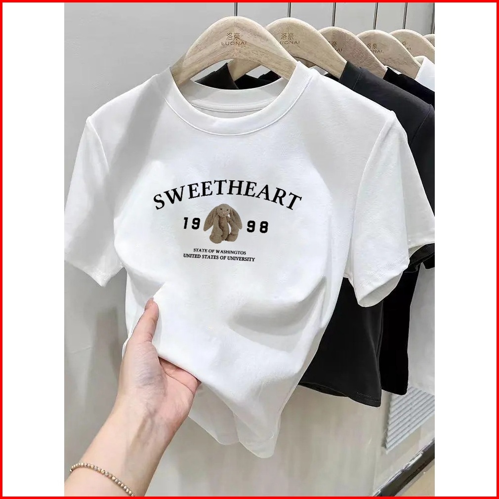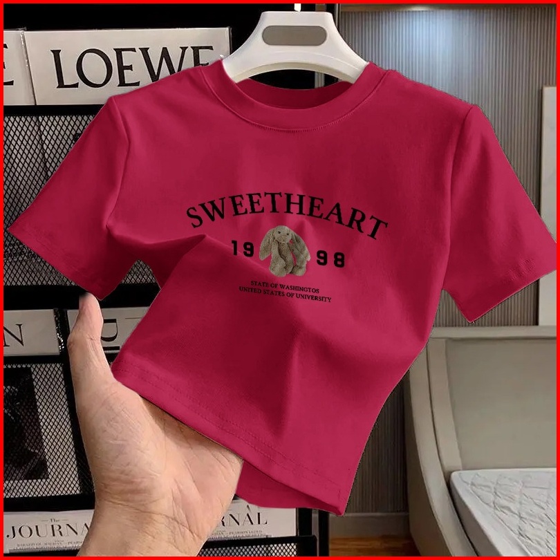 Xiaozhainv Baju Kaos Crop Top Wanita Korea Lengan Pendek Kaos Wanita Kaos Pendek Bermotif Beruang Kaos Wanita Kekinian