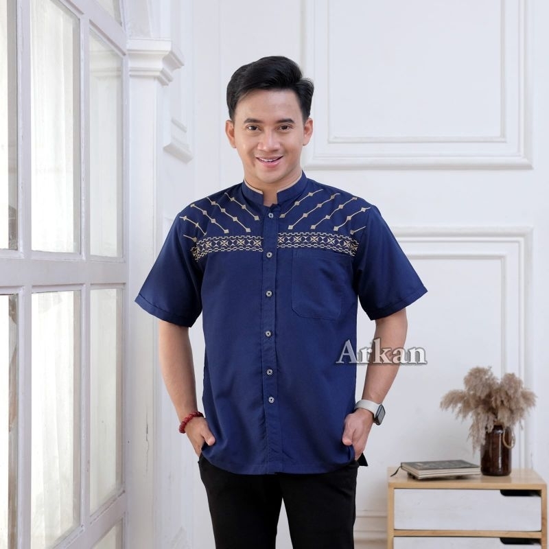 Koko Bordir Lengan Pendek - Koko Arkan - Koko Polos Dewasa Premium Bahan Vito Signature - Saku Atas