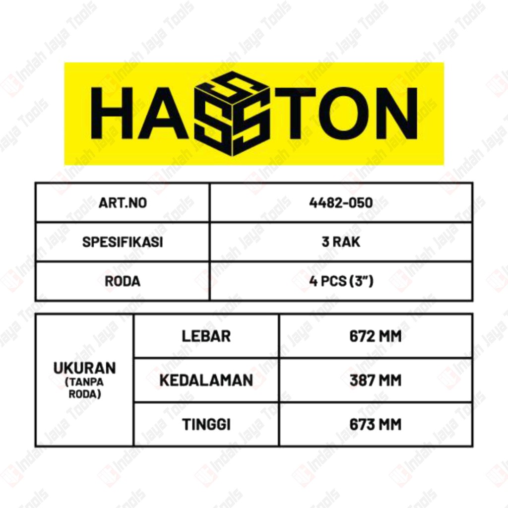 FLASH SALE HASSTON 4482050 Tool Cart 3 Shelf Troli Bengkel 3 Susun Meja Kerja Roda Rak Perkakas Bengkel Workshop