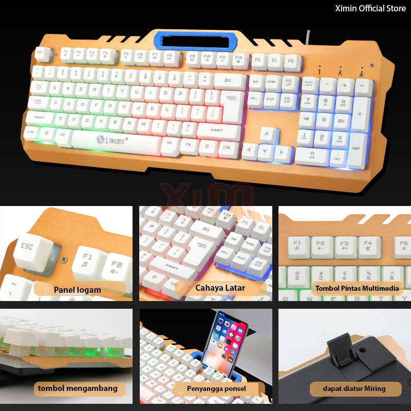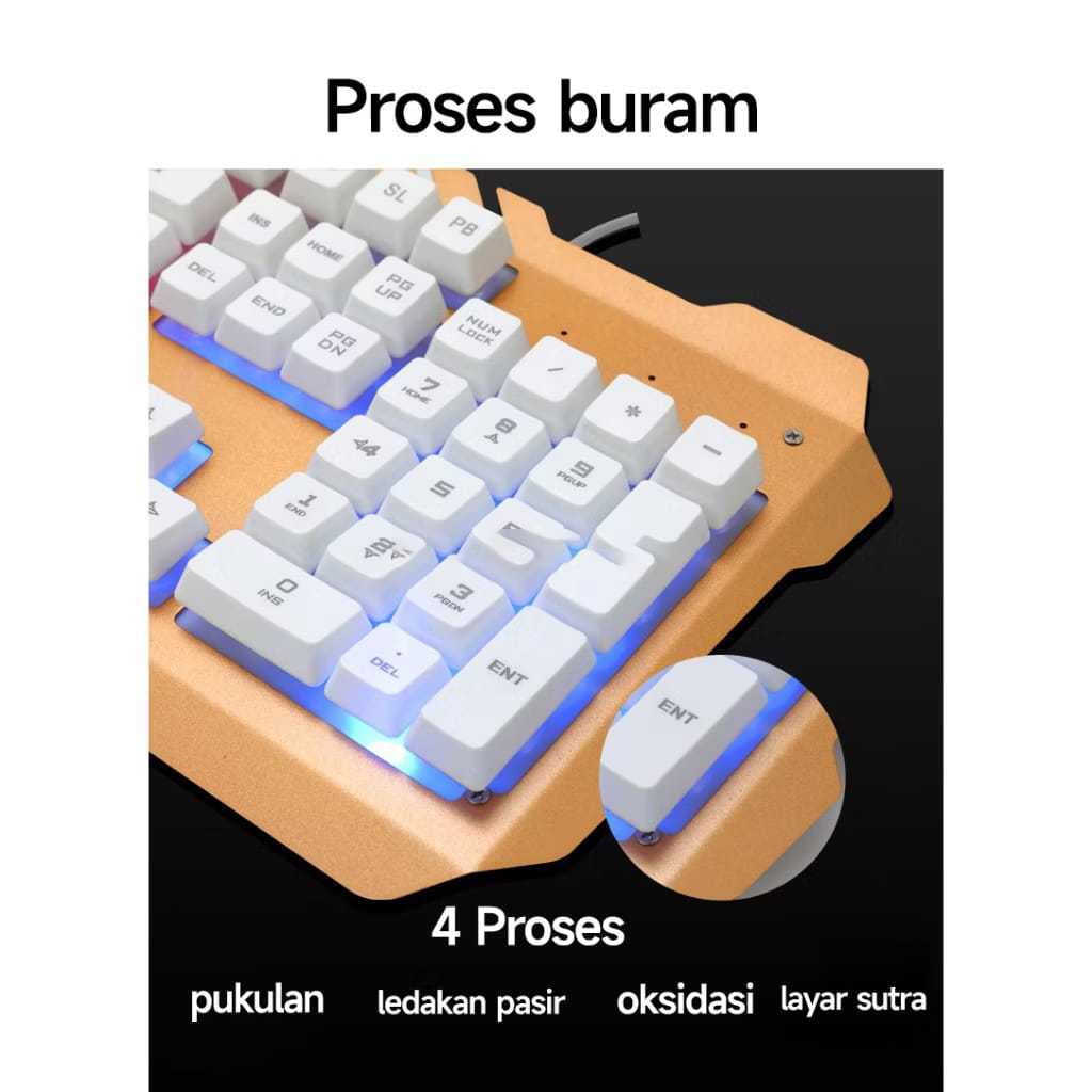 Xim PC Kombo Keyboard Gaming K21 dari Koneksi USB Kabel Panel Logam Sensasi Mekanis Tahan Lama Desain Premium dengan