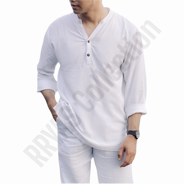 Kemeja Pria Lengan Panjang Basic Casual Vintage Formal Katun Rayon Twill Nyaman Lembut S - XXXL