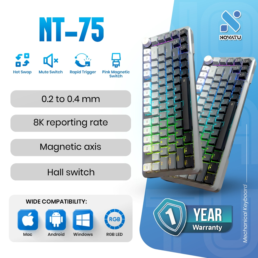 Keyboard Novatu Nt-75 Gaming Mechanical Rapid Trigger 75 PERSEN Hall Effect Magnetic Switch - Rgb Led
